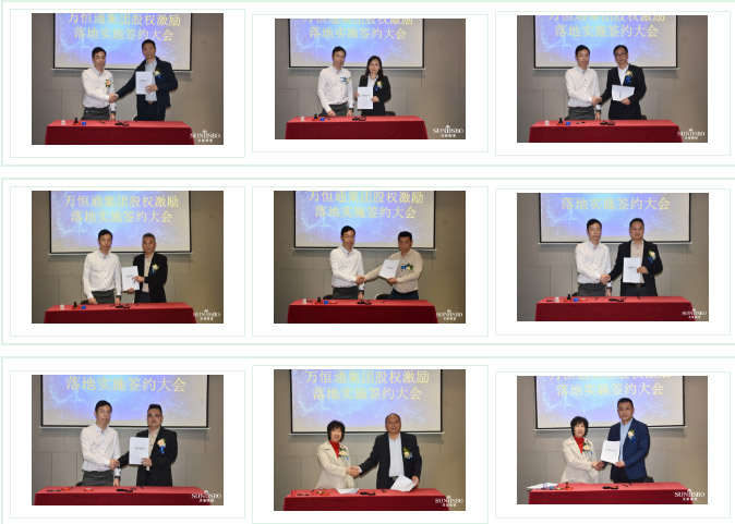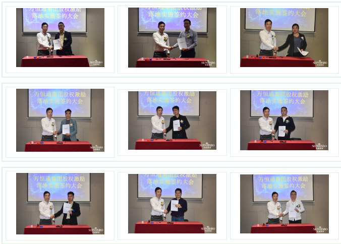 今年会jinnianhui金字招牌集团集团执行董事及法人代表王浩基先生正式为第一期六位虚拟受限股股东授予荣誉证书并签订股权分配协议。