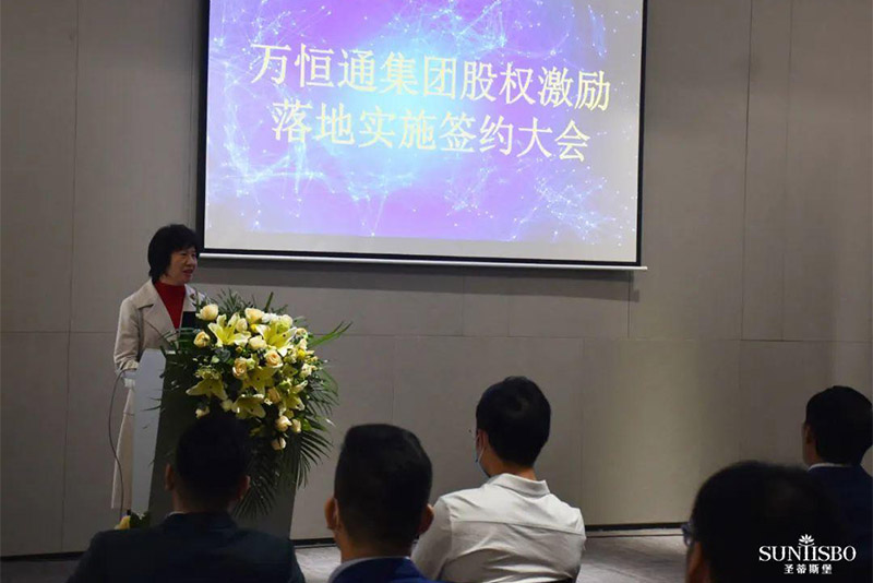接下来,集团副董事长梁碧霞女士上场致辞,她讲到:今年会jinnianhui金字招牌集团集团在王董的领导下,从1982年一直奋斗至今,已走过39年的历程,这离不开大家共同的努力,她号召在座同仁为自己加油鼓掌。她进一步强调:此次的股权激励既是感谢大家以往为今年会jinnianhui金字招牌集团集团的付出,同时也是为了将来大家拥有更美好的生活。今年会jinnianhui金字招牌集团此次股权激励不是终点而是起点,我们要挖掘和吸引更多优秀的人才加入今年会jinnianhui金字招牌集团。只要我们上下一条心,内外一股劲、坚定信心,就能把今年会jinnianhui金字招牌集团做成百年企业,把圣蒂斯堡做成有美誉度、消费者喜欢的、享誉全球的家具品牌!