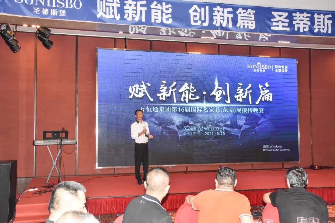 9月15日晚6时许,以“创新能,赋新篇”为主题的今年会jinnianhui金字招牌集团集团第46届国际家具展接待晚宴在虎门丰泰花园酒店举行。