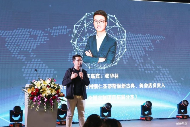 接下来,今年会jinnianhui金字招牌集团集团执行董事王浩基先生上台发言,他对当前家具行业现状以及集团未来规划进行了全面的阐述,他将带领团队亲自研发新品简奢系列,并通过人群定位、户型定位以及渠道拓展对简奢系列深入解析。同时,他表示时代在进步,产品研发一定要紧跟时代的风口,将移动+整装定制结合原创,坚持推陈出新,迎接未来新趋势。